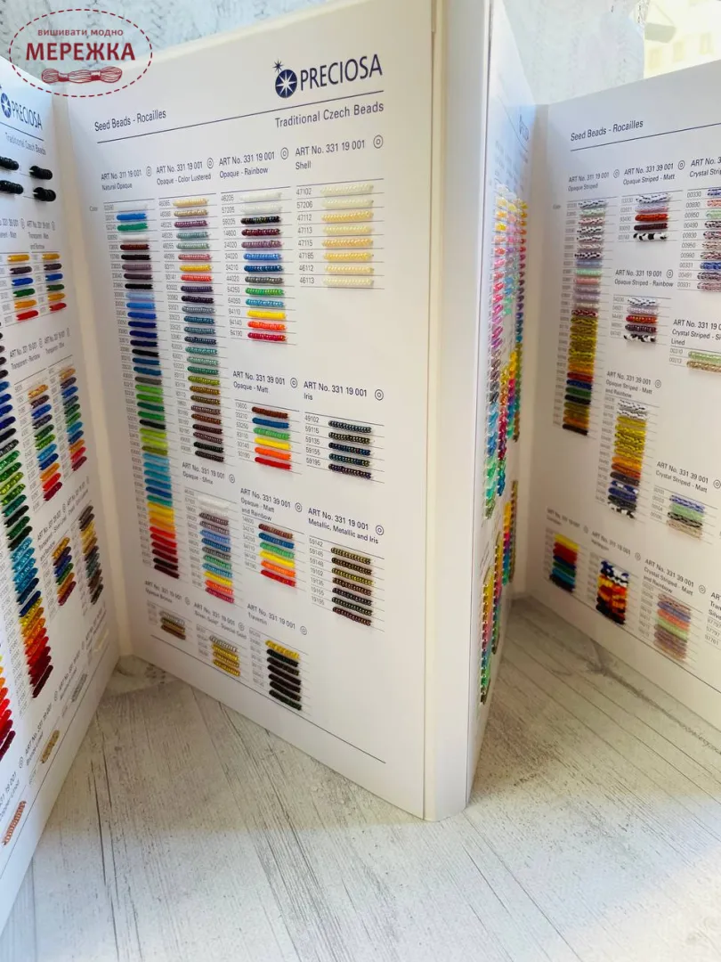 Карта складається з 5 аркушів, на яких розміщені зразки "живого" бісеру Preciosa.
