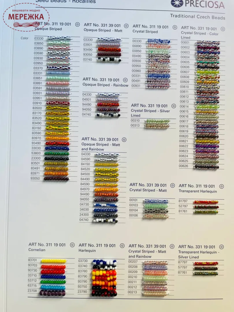 Карта кольорів бісеру від фірми Preciosa (Чехія).