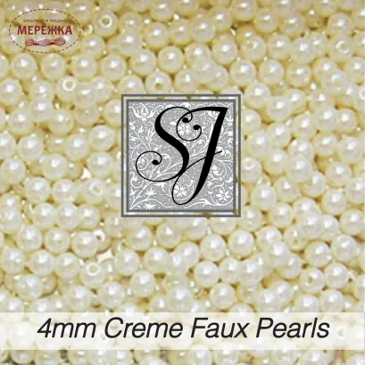 SJ Designs Faux Pearls, 4 mm Round CREME