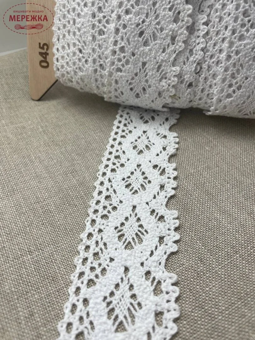 Мереживо біле, 100% бавовна, 4,5 см. (045) 49/1