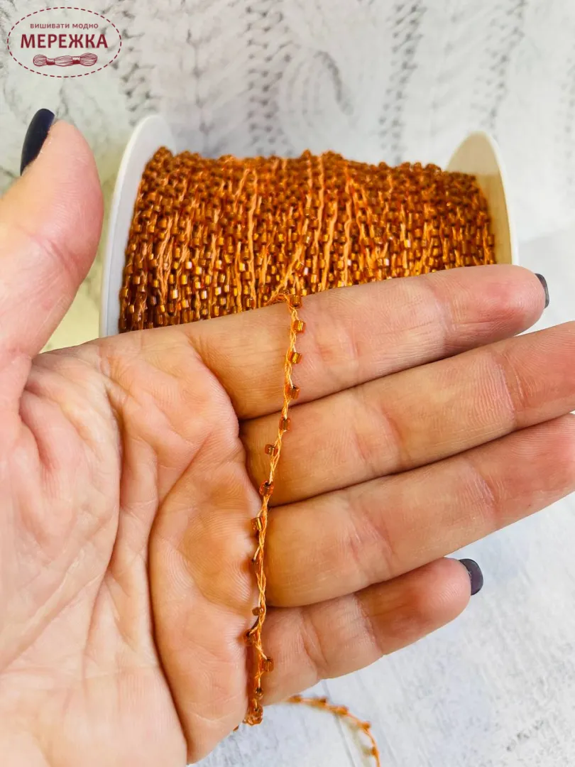 Шнур плетений декоративний, з бісеру, колір бронза