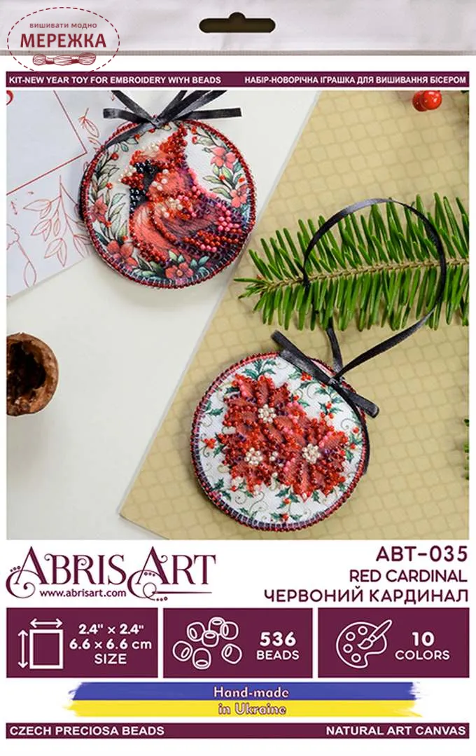 Набір для вишивання бісером новорічної іграшки від вітчизняного виробника Abris Art "Червоний кардинал".