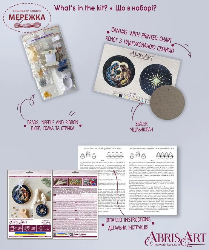 Набір для вишивання бісером новорічної іграшки від вітчизняного виробника Abris Art "Свята ніч".