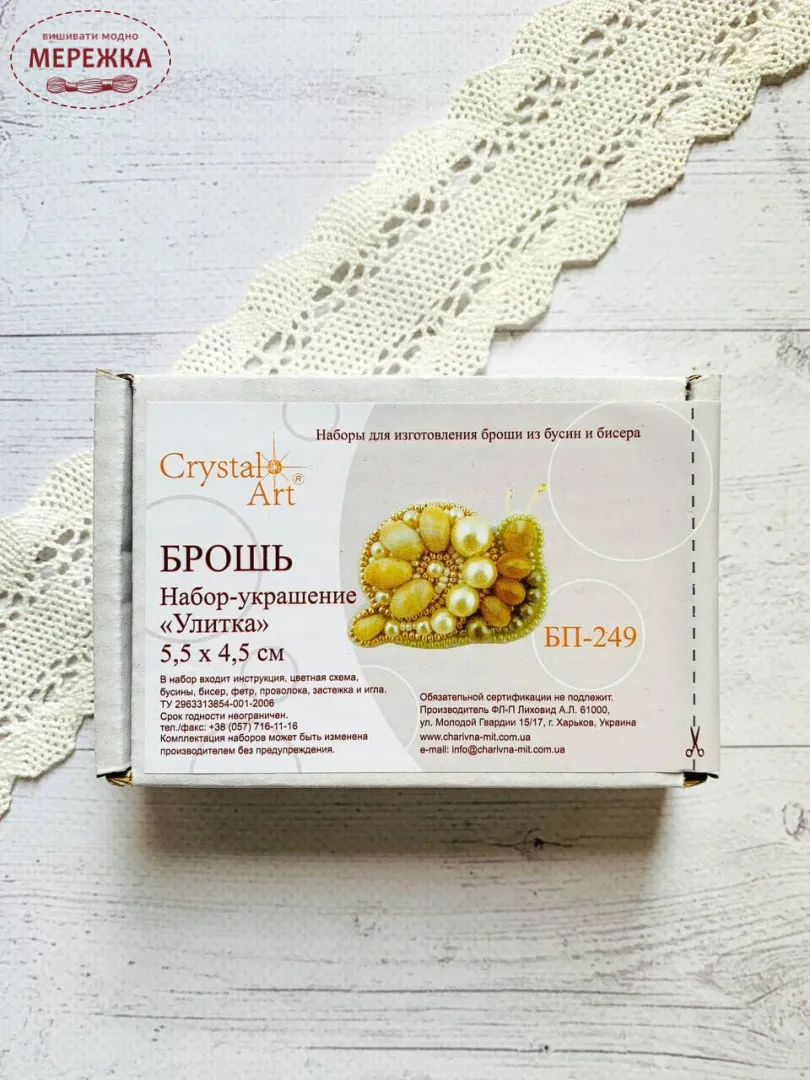 Набір для вишивання бісером CrystalArt Брошка, Равлик БП-249