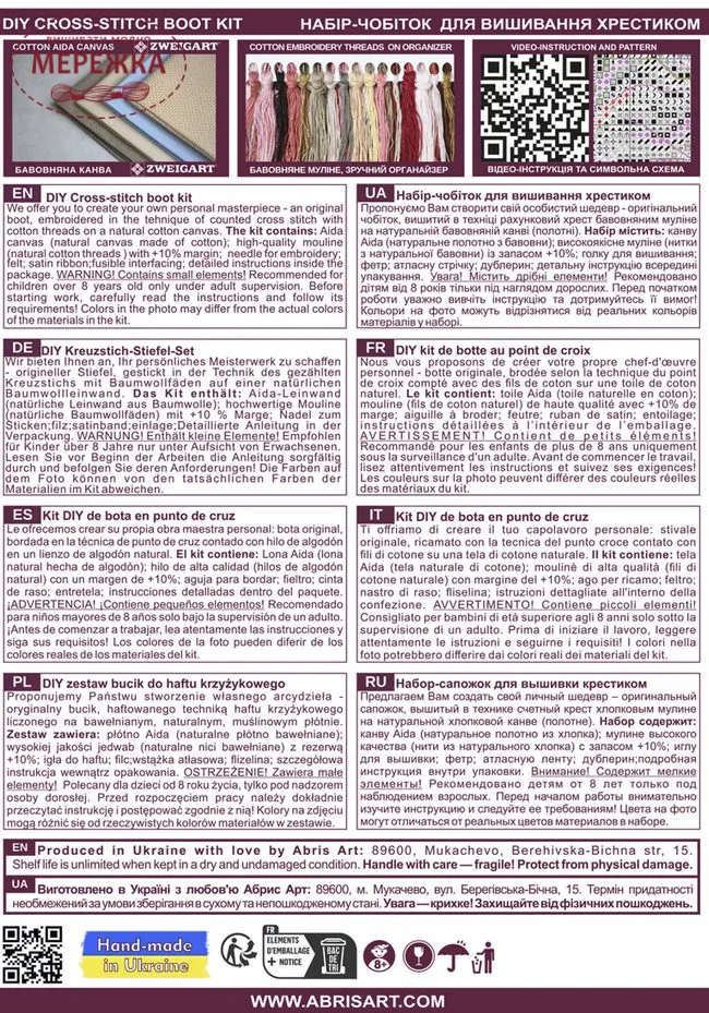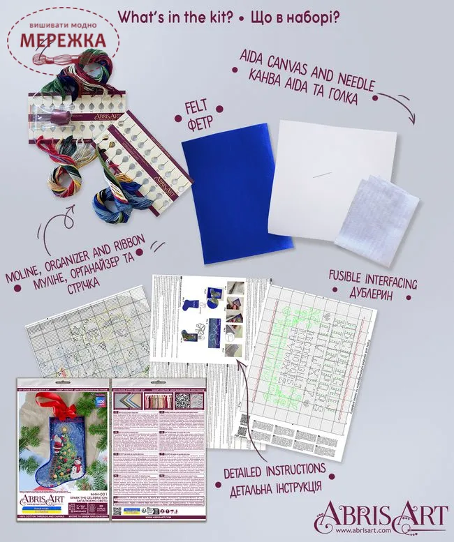 Набір для вишивання хрестиком від вітчизняного виробника Abris Art "Чобіток. Запалюємо свято".