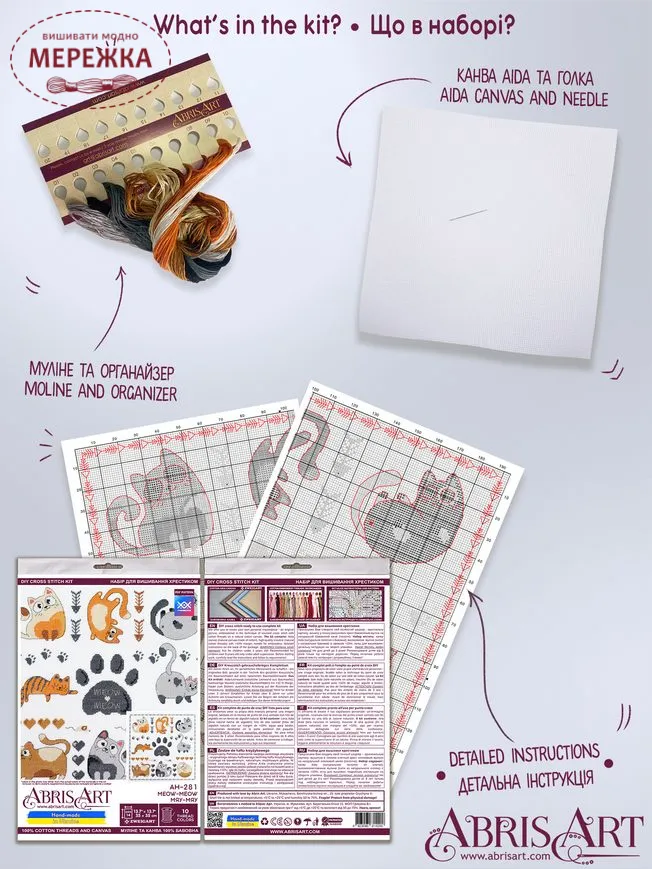 Набір для вишивання хрестиком від вітчизняного виробника Abris Art "Мяу-Мяу".