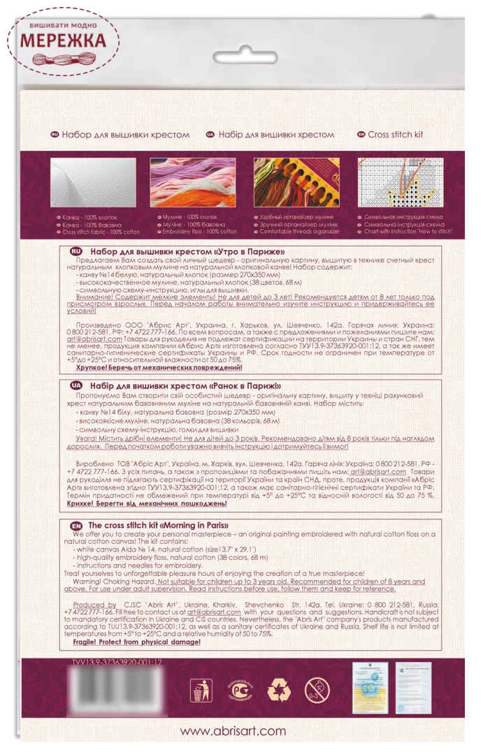 Набір для вишивання хрестиком від вітчизняного виробника Abris Art "Ранок в Парижі".