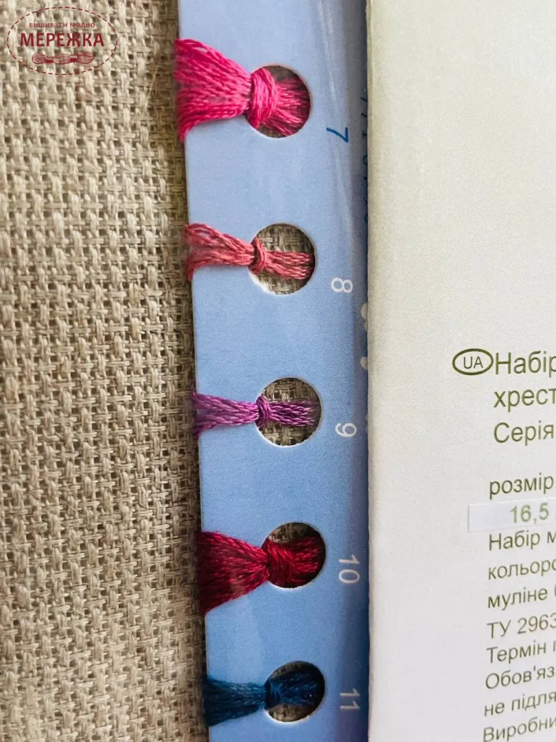 До набору входять матеріали провідних виробників: тканина Zweigart, муліне Madeira.