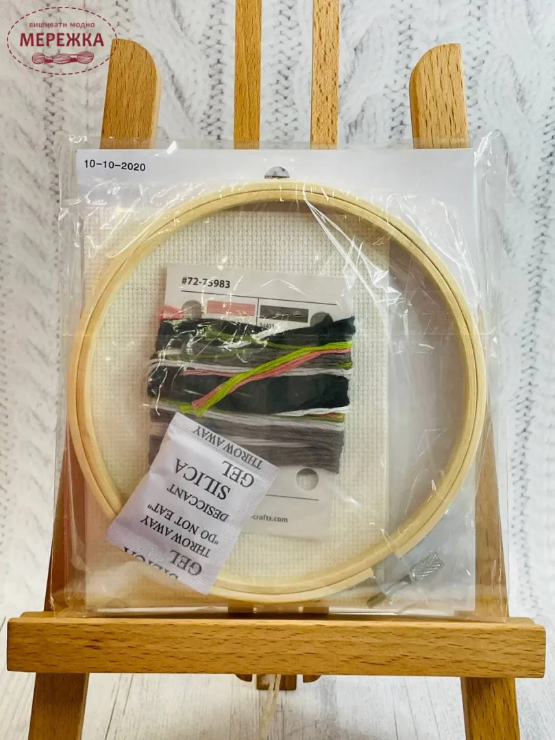 До набору додаються якісні букові п'яльця, на яких ви будете вишивати дизайн, а потім можна зрізати залишки тканини і у п'яльцях повісити картину на стіну.