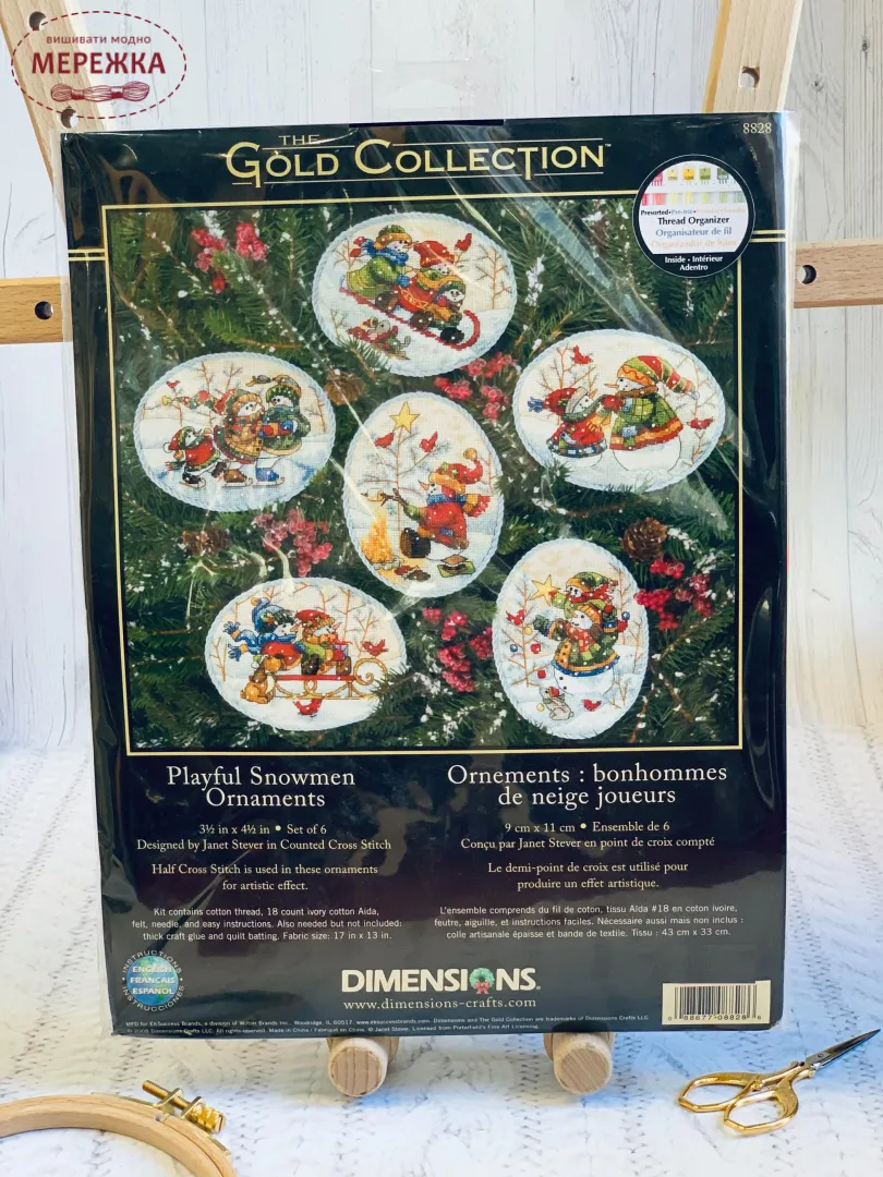 Набір для вишивання хрестиком Dimensions Playful Snowmen Ornaments 08828