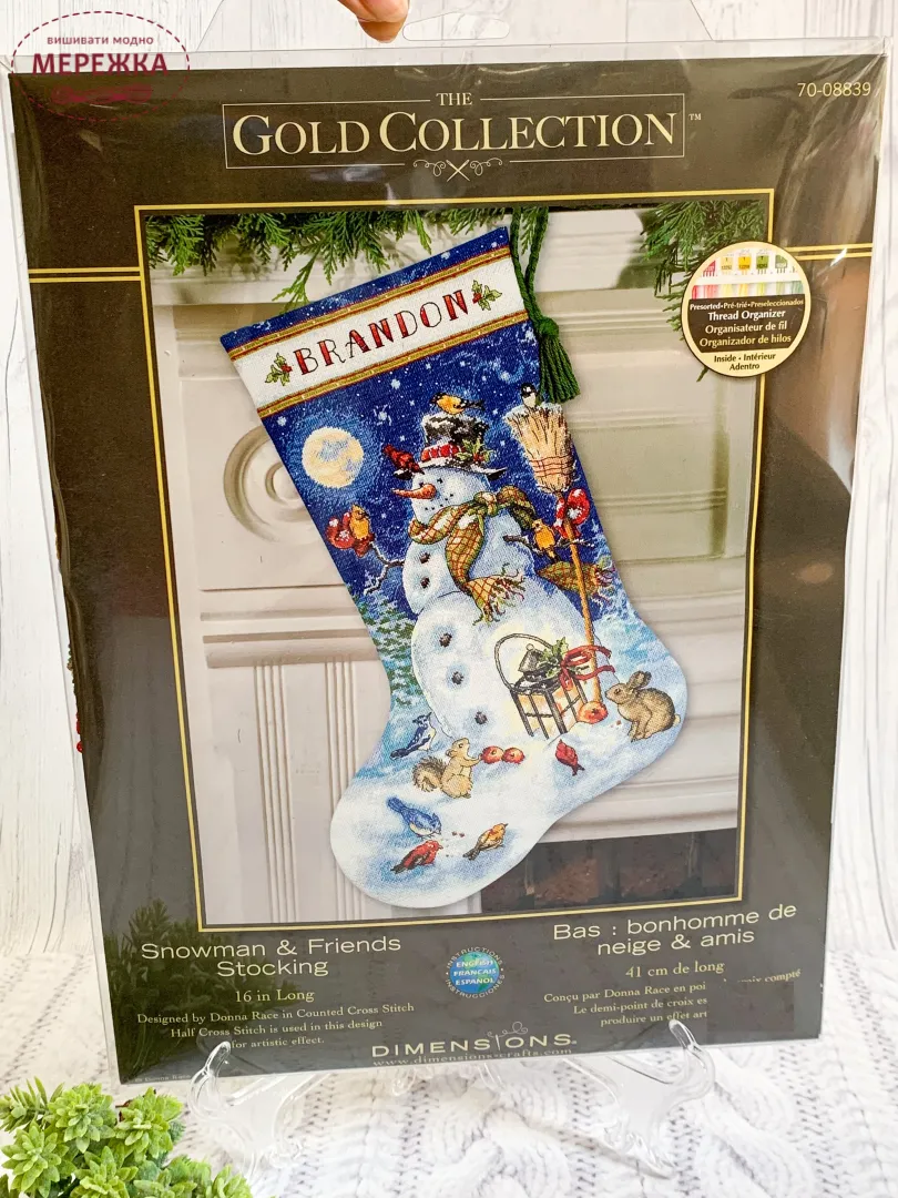 Набір для вишивання хрестиком Dimensions Snowman and Friends Stocking (Сніговик і друзі) арт. 70-08839
