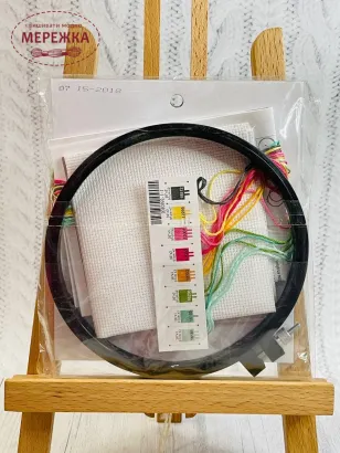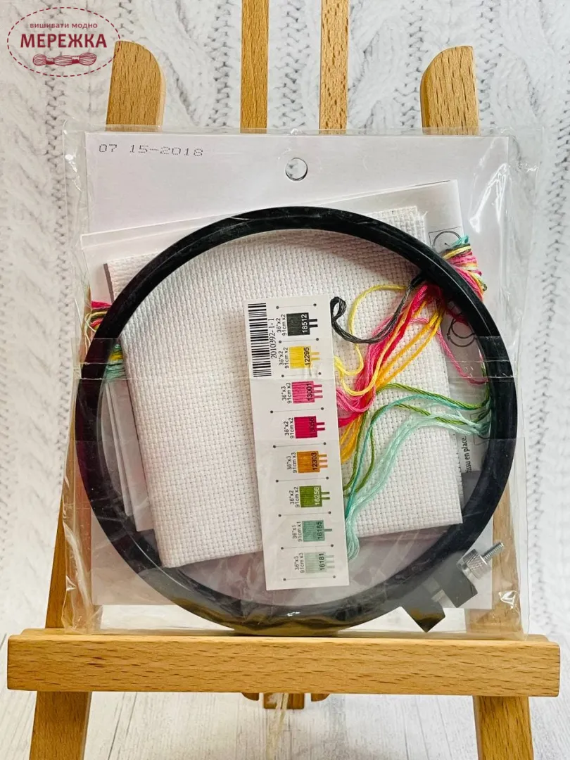 До набору додаються якісні букові п'яльця, на яких ви будете вишивати дизайн, а потім можна зрізати залишки тканини і у п'яльцях повісити картину на стіну.
