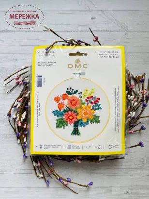 Набір для вишивання хрестиком від фірми DMC укомплектований усім необхідним, до складу набору ще додатково входять п'яльця.
