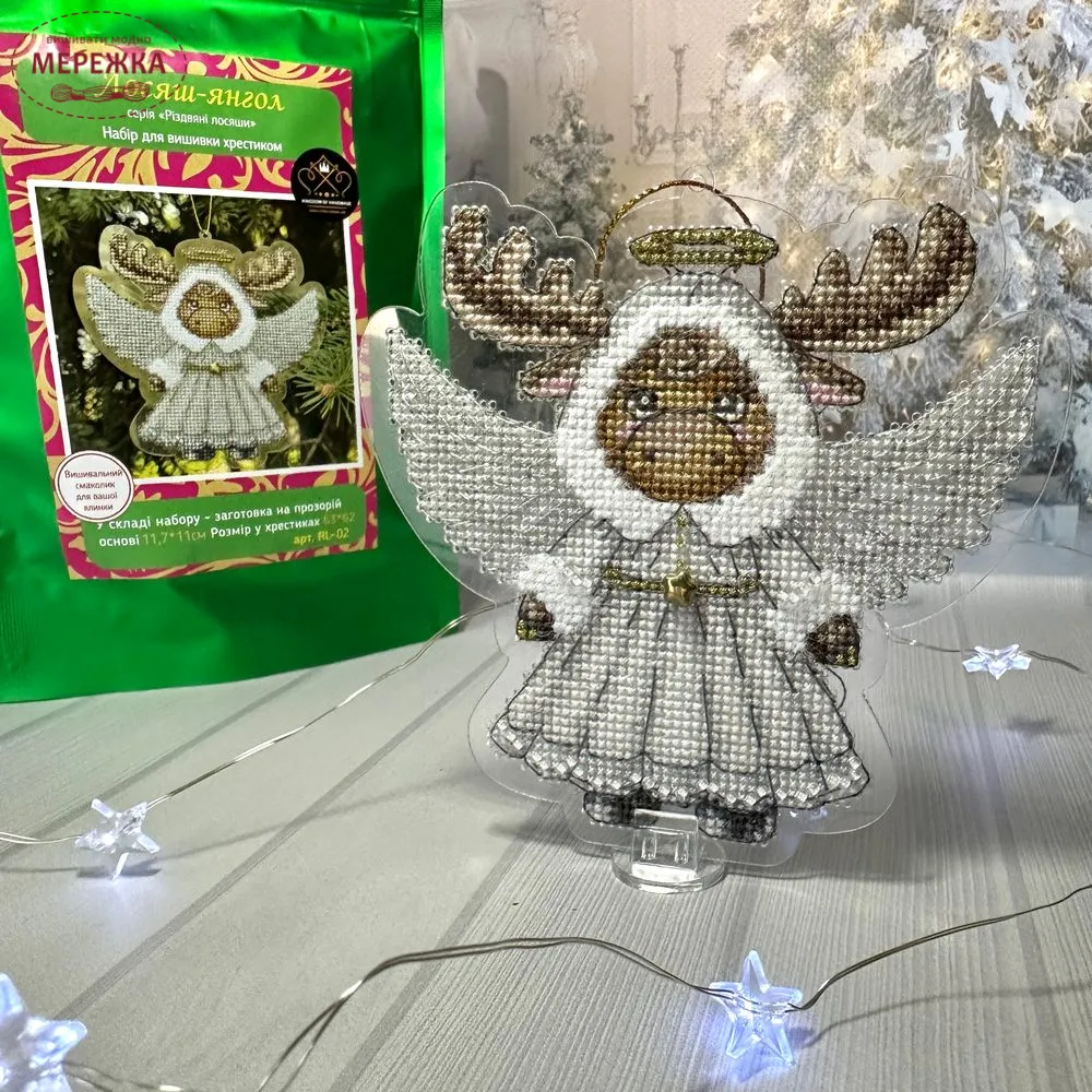 Набір для вишивання хрестиком Kingdom of Handmade на прозорій основі. Лосяш-янгол RL-02