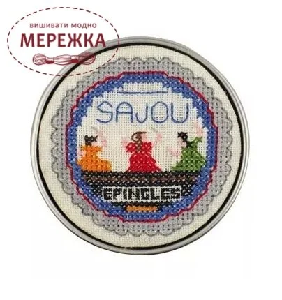 Цей мотив походить від великої схеми вишивки хрестиком, що згадує історію Maison Sajou. Вона вишита двома нитками поверх двох ниток тканини, окрім назви, що вказує на вміст коробки: ЕПІНГЛИ (шпильки). Це вишито однією ниткою тканини з використанням однієї нитки Retors du Nord. Комплект містить: