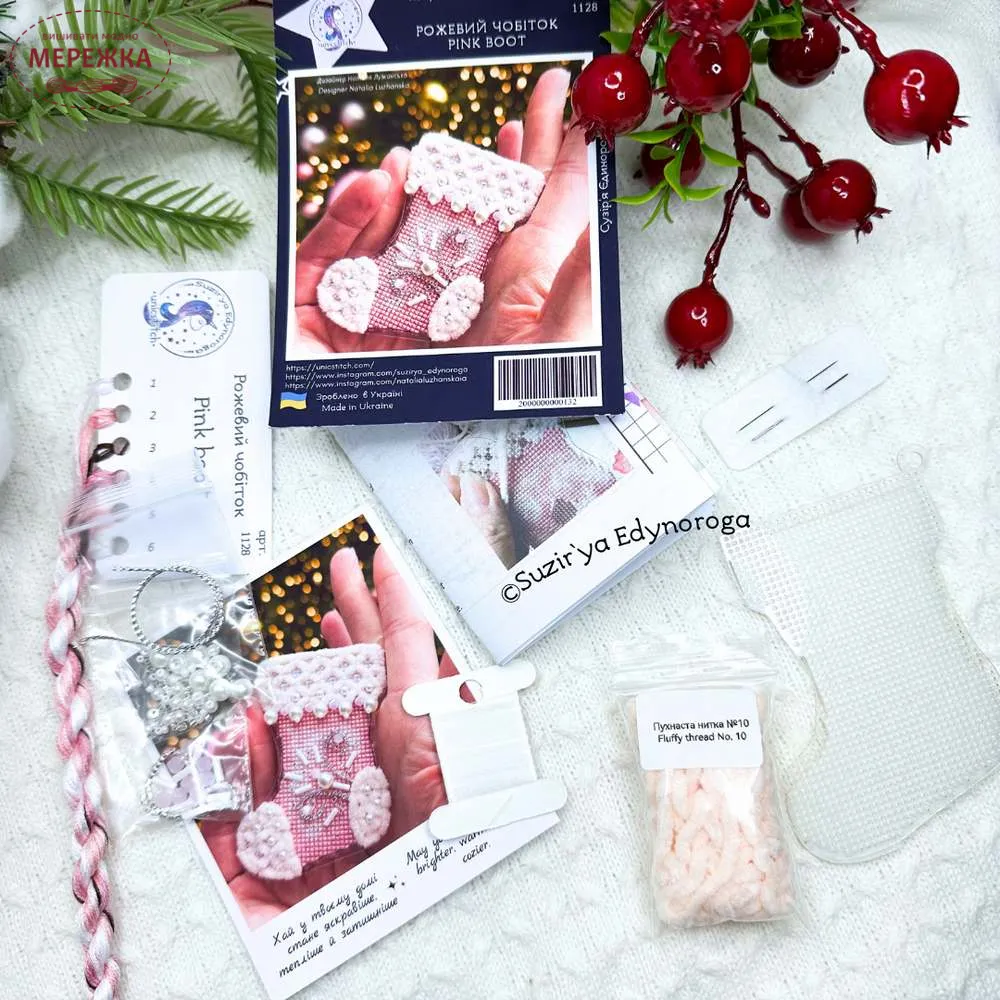 Чудовий набір "Рожевий чобіток" для вишивання хрестиком та бісером від українського дизайнера та виробника "Сузір’я Єдинорога" (Наталя Лужанська) .