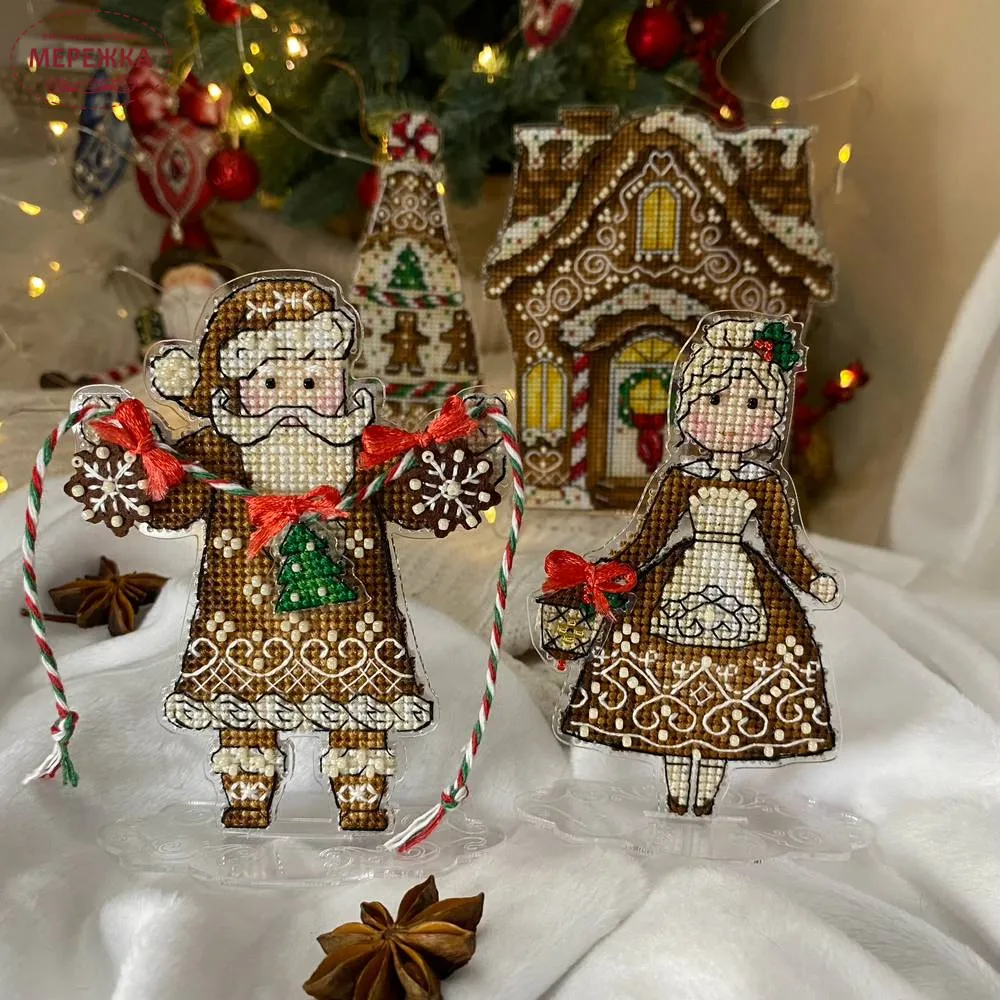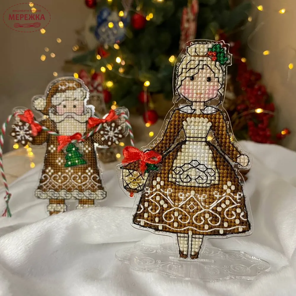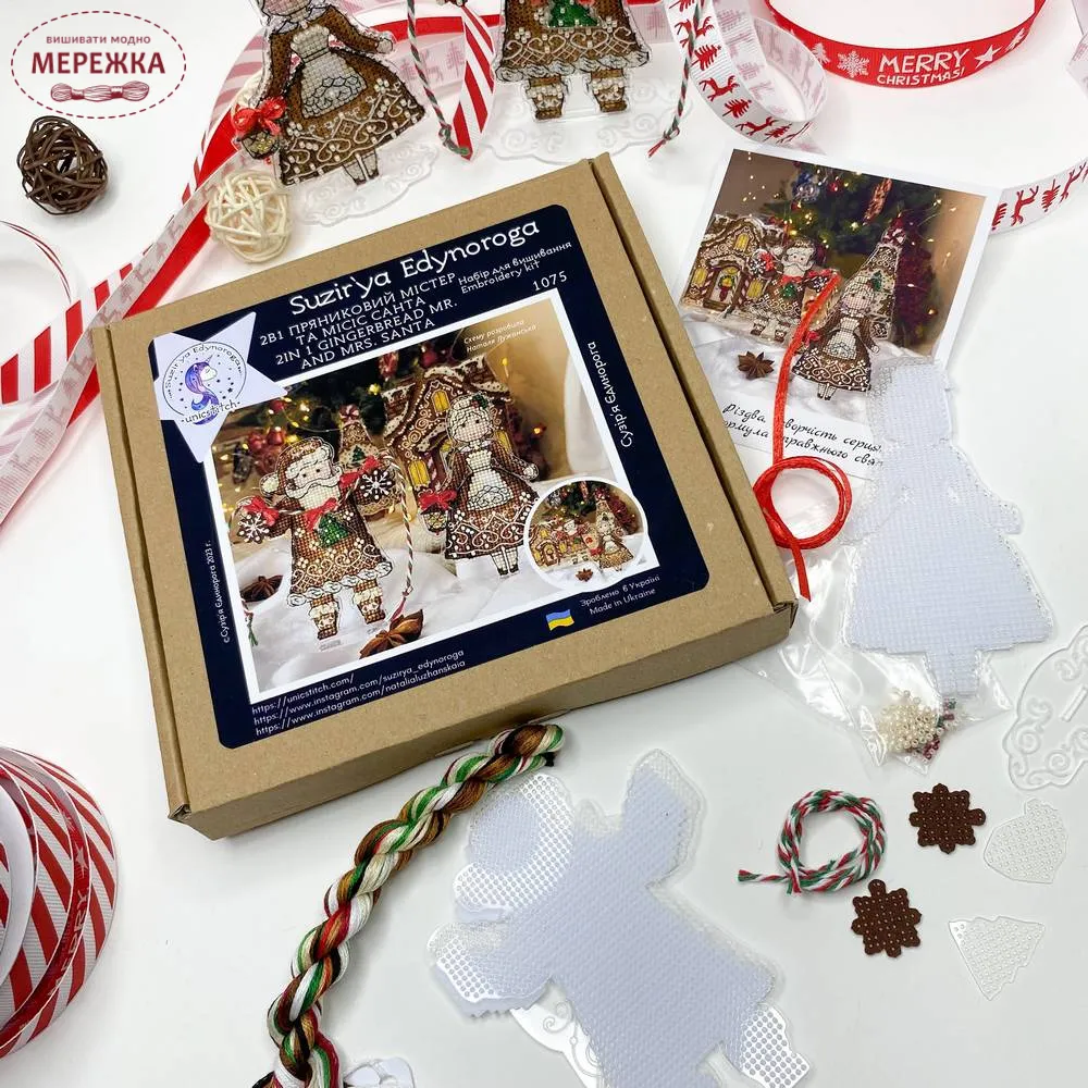 Чудовий набір "2в1 Пряниковий Містер та Місіс Санта" для вишивання хрестиком та бісером від українського дизайнера та виробника "Сузір’я Єдинорога" (Наталя Лужанська) .