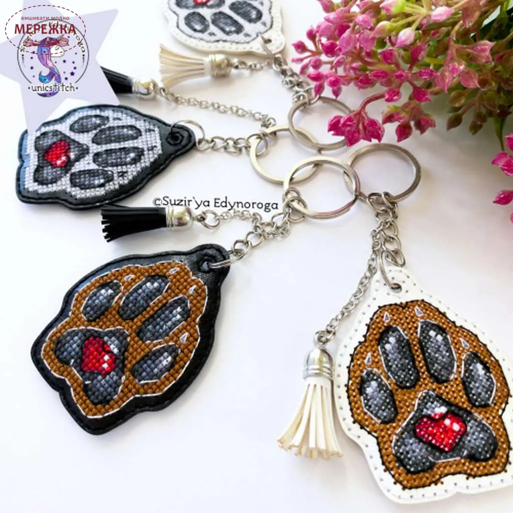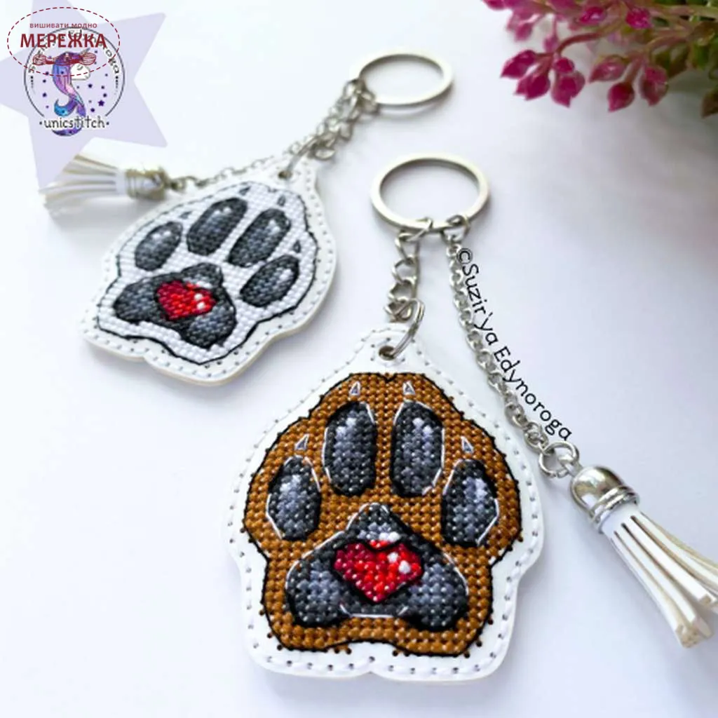 Чудовий набір "Коричнева лапка песика на білому" для вишивання хрестиком від українського дизайнера та виробника "Сузір’я Єдинорога" (Наталя Лужанська) .