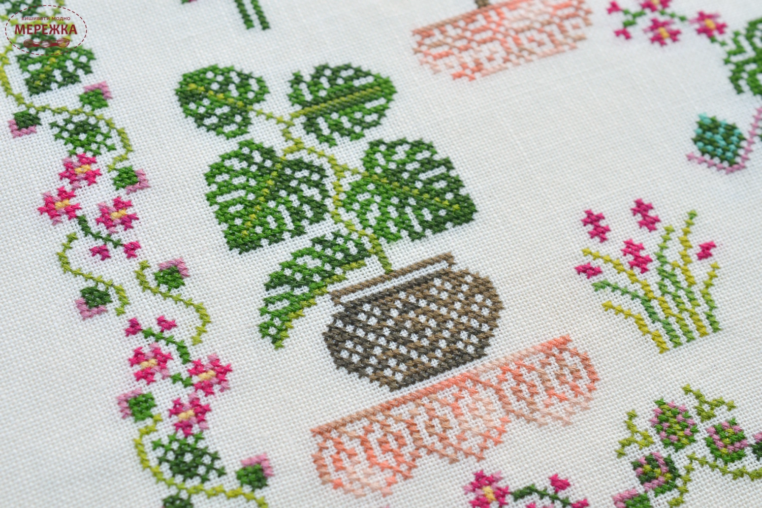 У вишивці використовуються нитки секційного фарбування, що додає "сільського" шарму роботі.
