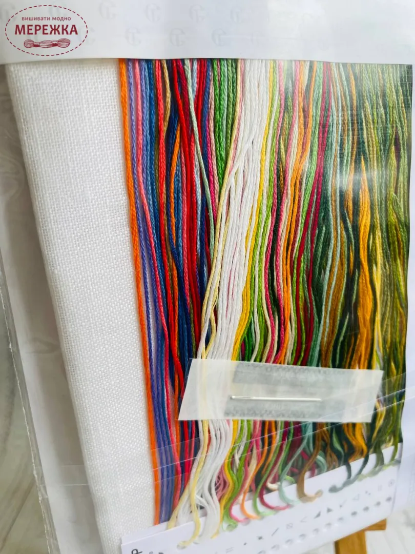 Набір чудово укомплектований, схема чітка та зрозуміла, нитки у наборі фірми DMC, тканина найкращої якості, фірми Zweigart.