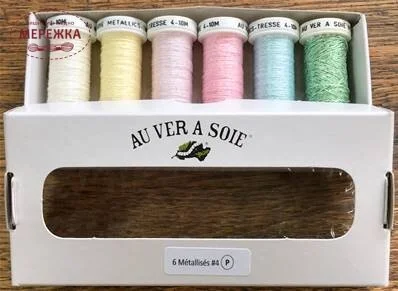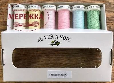 Набір металізованих ниток у товщині #4 від Au Ver à Soie (Франція) містить 6 металізованих ниток, які чудово поєднанні у одній кольоровій гаммі.