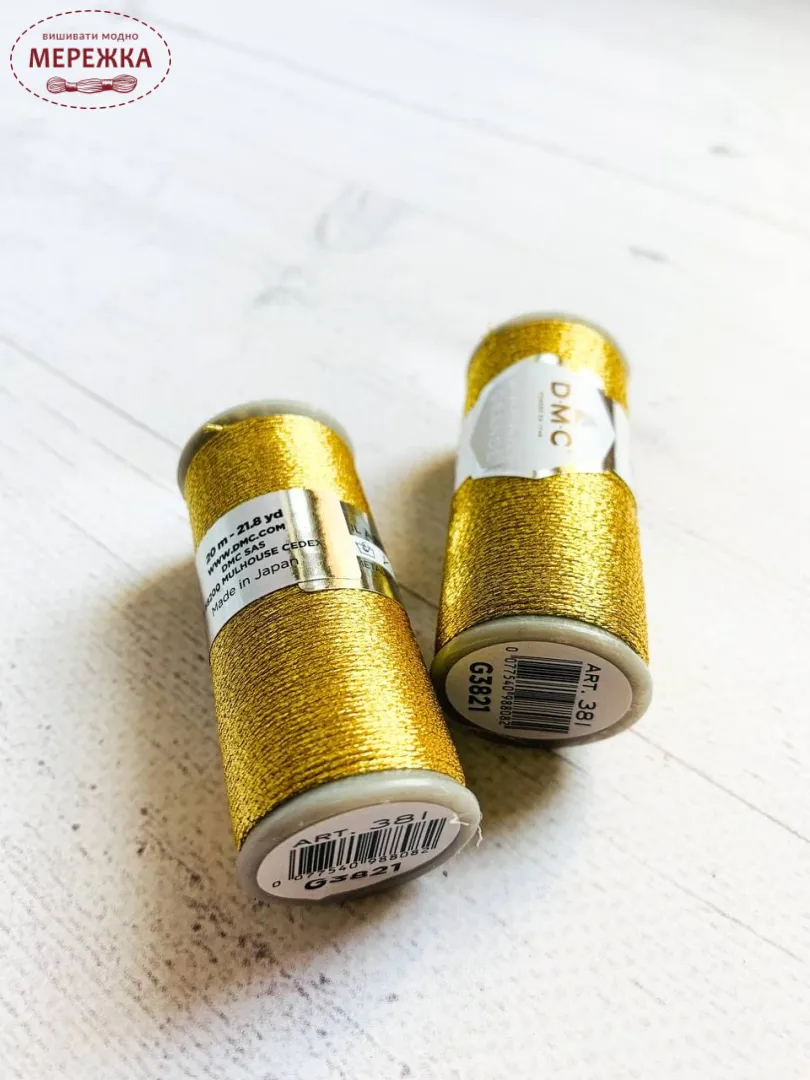 Нитка виготовляється з волокон віскози, які згодом покриваються металізованим поліестерним покриттям – так досягається міцність та вічність нитки.
