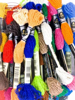Муліне DMC (Франція) – якісні, з легким полиском нитки, використовуються для вишивання хрестиком та гладдю, низинкою, колодочками та іншими техніками.