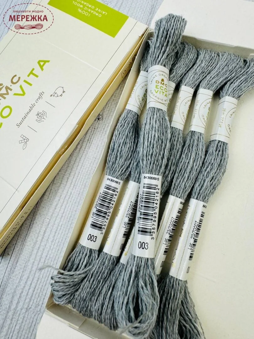 Нитка не підлягає діленню. Товщина нитки Eco Vita орієнтовно відповідає трьом ниткам звичайного муліне.
