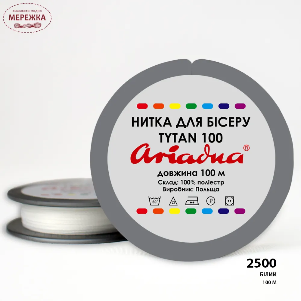 Нитки для вишивання бісером Ariadna Tytan 100, колір білий (100 метрів) 2500/100