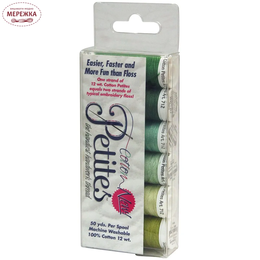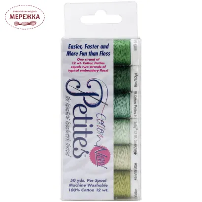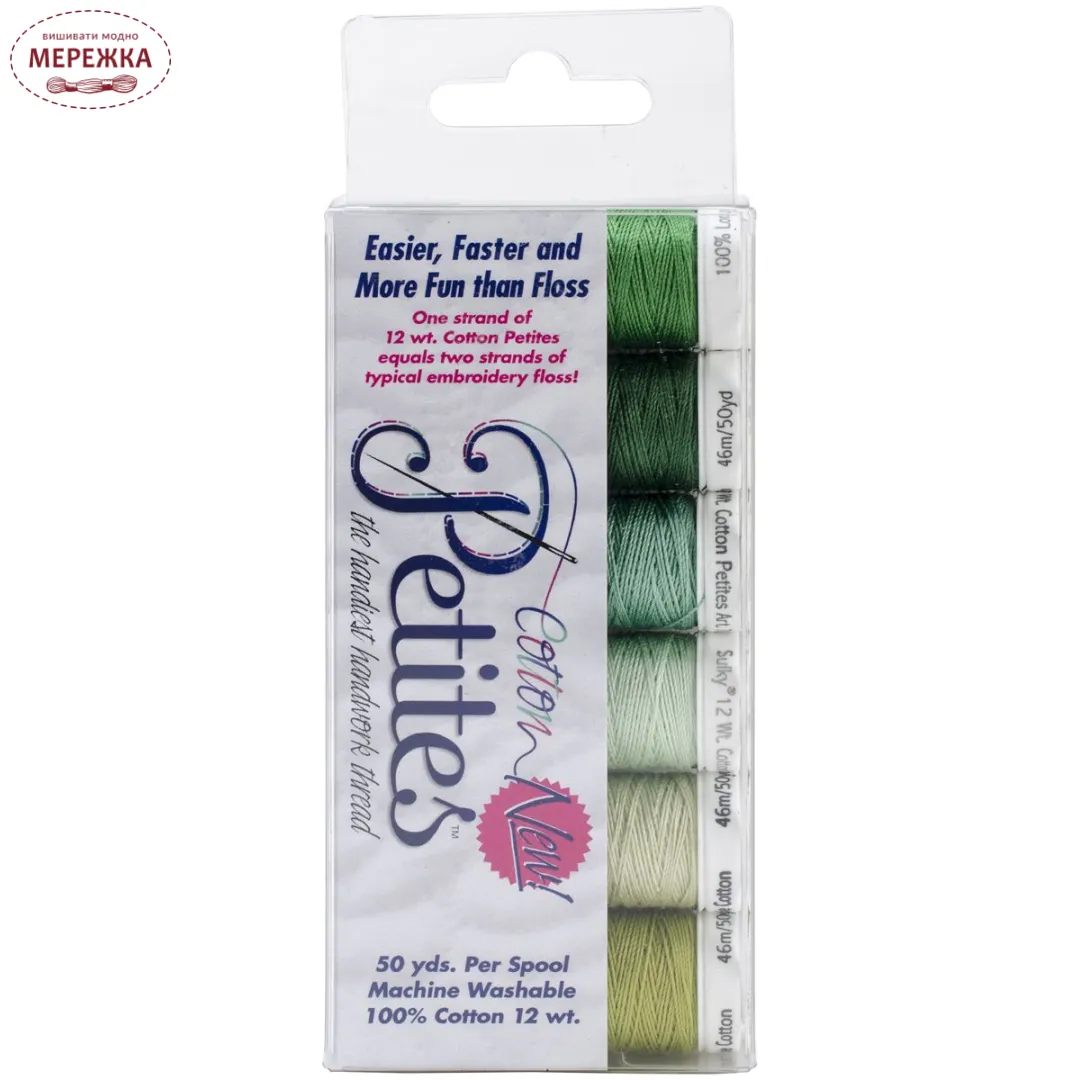 Колекція ниток зелених відтінків "Greens Sampler Collection" Sulky-Sampler 12 Wt Cotton Petites.