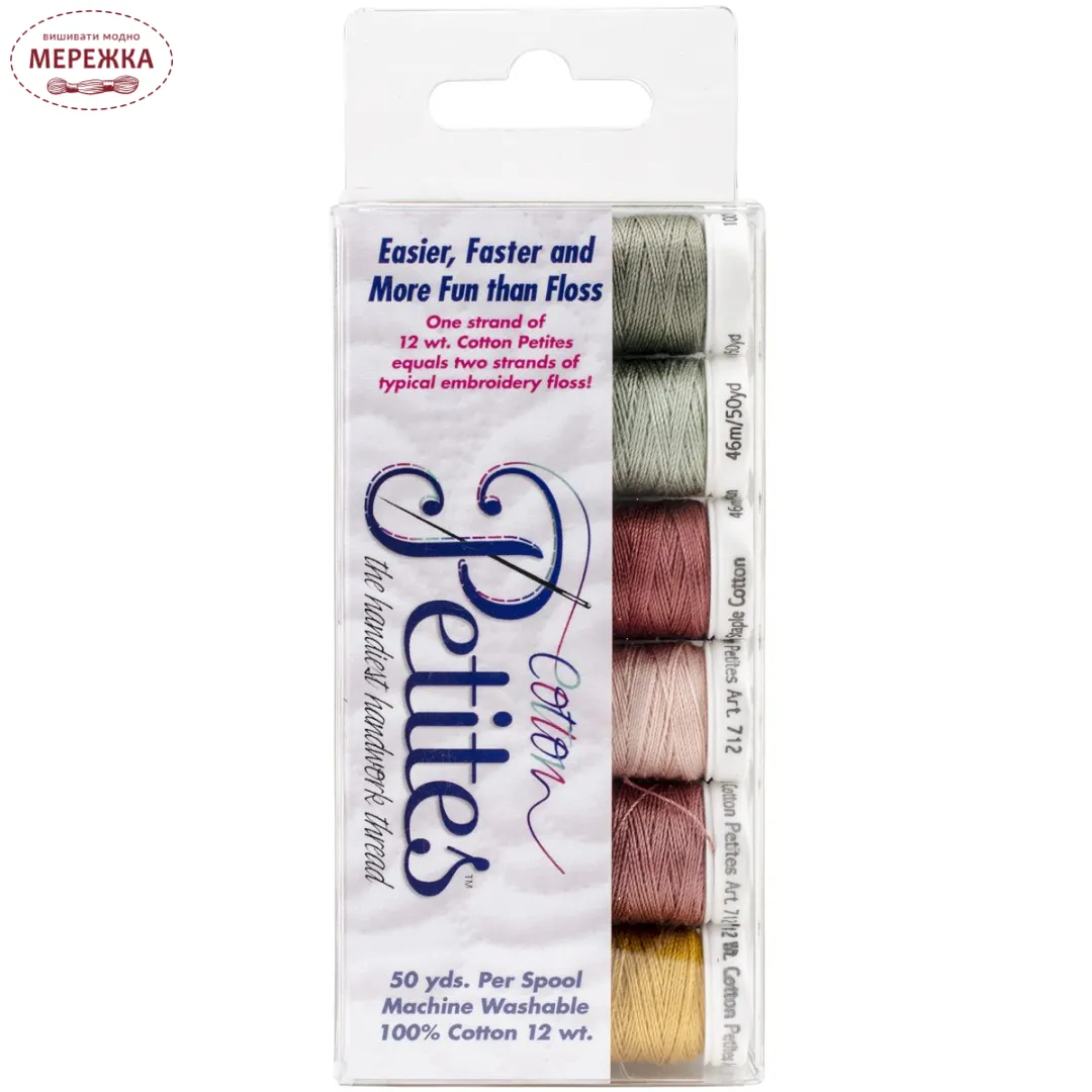 Одне пасмо 12 wt. cotton petites дорівнює двом ниткам нитки для вишивання.