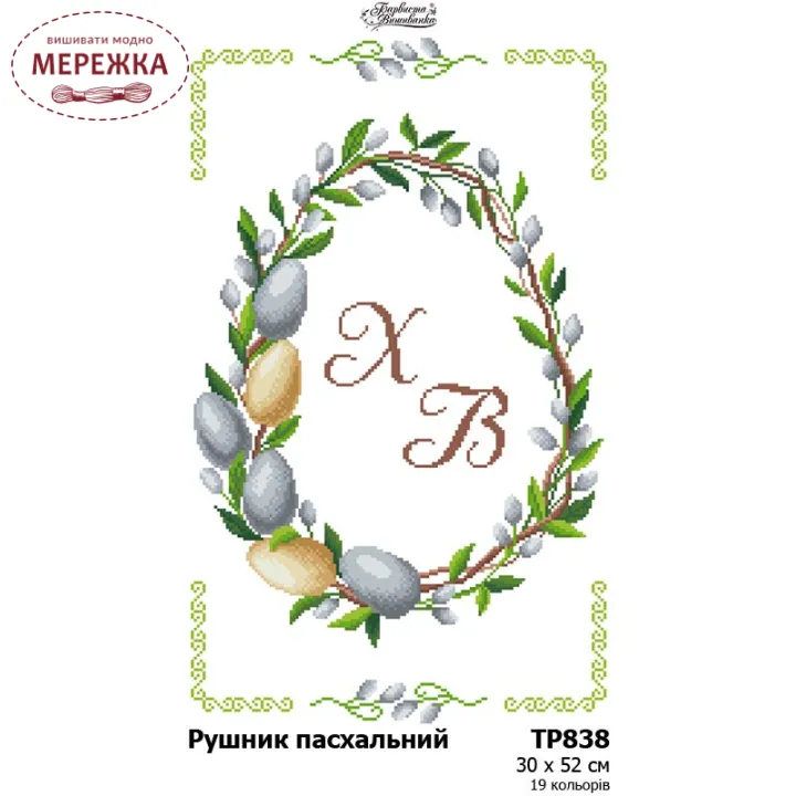 Схема для вишивання бісером та нитками великоднього рушника ТР838пн3052 від виробника "Барвиста вишиванка". З зображенням великодньої композиції з орнаментом.