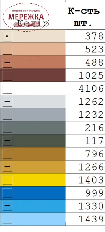 В інструкції зазначена кількість кольорів, котрі використовуються у схемі для вишивання.