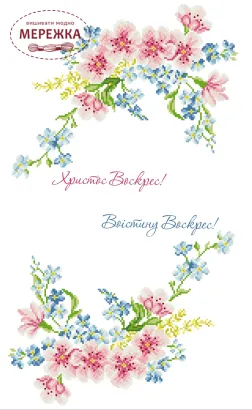 Схема для вишивання бісером великоднього рушника РП-020 від виробника "Бусинка". З зображенням квіткового віночка та надписом.