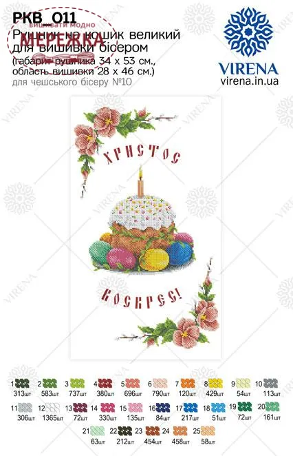 Схема для вишивання бісером великоднього рушника РКВ-011 від виробника "Virena". З зображенням великоднього паски та писанок.