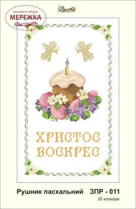 Схема для вишивання бісером великоднього рушника ЗПР-011 від виробника "Золота підкова". З зображенням паски та писанок.