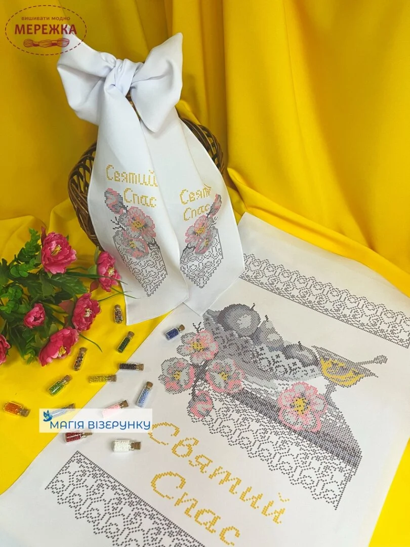 Схеми для вишивання бісером спасівського рушника та банта на кошик від Магії Візерунку. Ваш кошик отримає безліч компліментів завдяки вишитому комплекту.