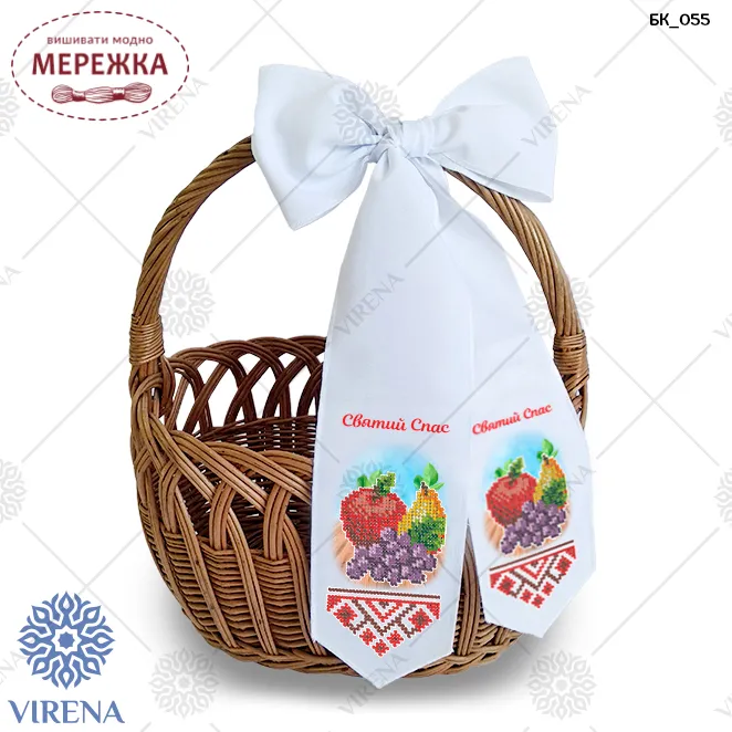 Схема для вишивання бісером спасівського банта на кошик БК-055 від виробника "Virena". Ваш кошик отримає безліч компліментів завдяки вишитому банту.