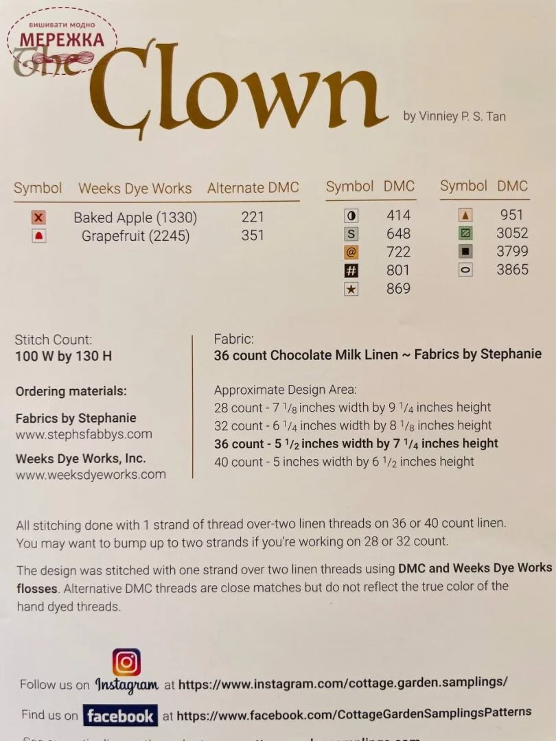 Схема для вишивання хрестиком від Cottage Garden Samplings "The Clown".