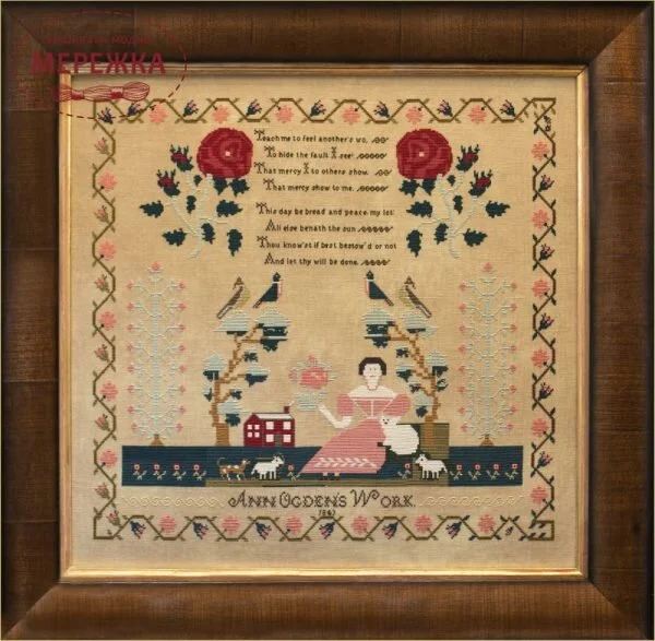 Схема для вишивання хрестиком Ann Ogden 1843 від Hands Across the Sea Samplers.