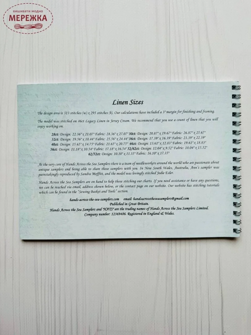 Hands Across The Sea Samplers Limited - це студія дизайну, яку заснували дві подруги. Студія спеціалізується на відтворенні вишуканих антикварних взірців вишивки з музейних зразків.