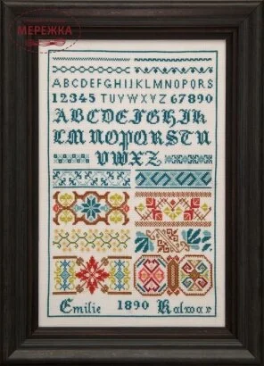 Схема для вишивання хрестиком Emilie Kalwar 1890 від Hands Across the Sea Samplers.