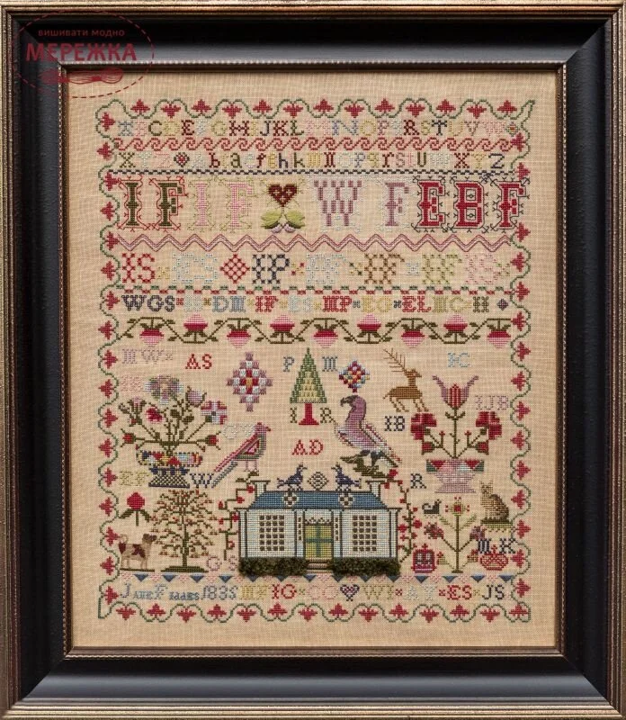 Схема для вишивання хрестиком Jane Fiddes 1835 від Hands Across the Sea Samplers.