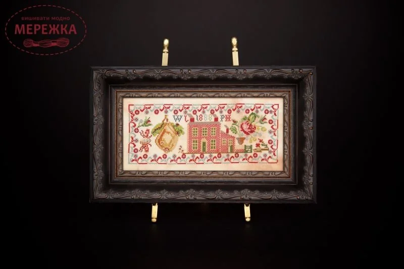 Схема для вишивання хрестиком The Rose and The Giant Pear 1888 від Hands Across the Sea Samplers.