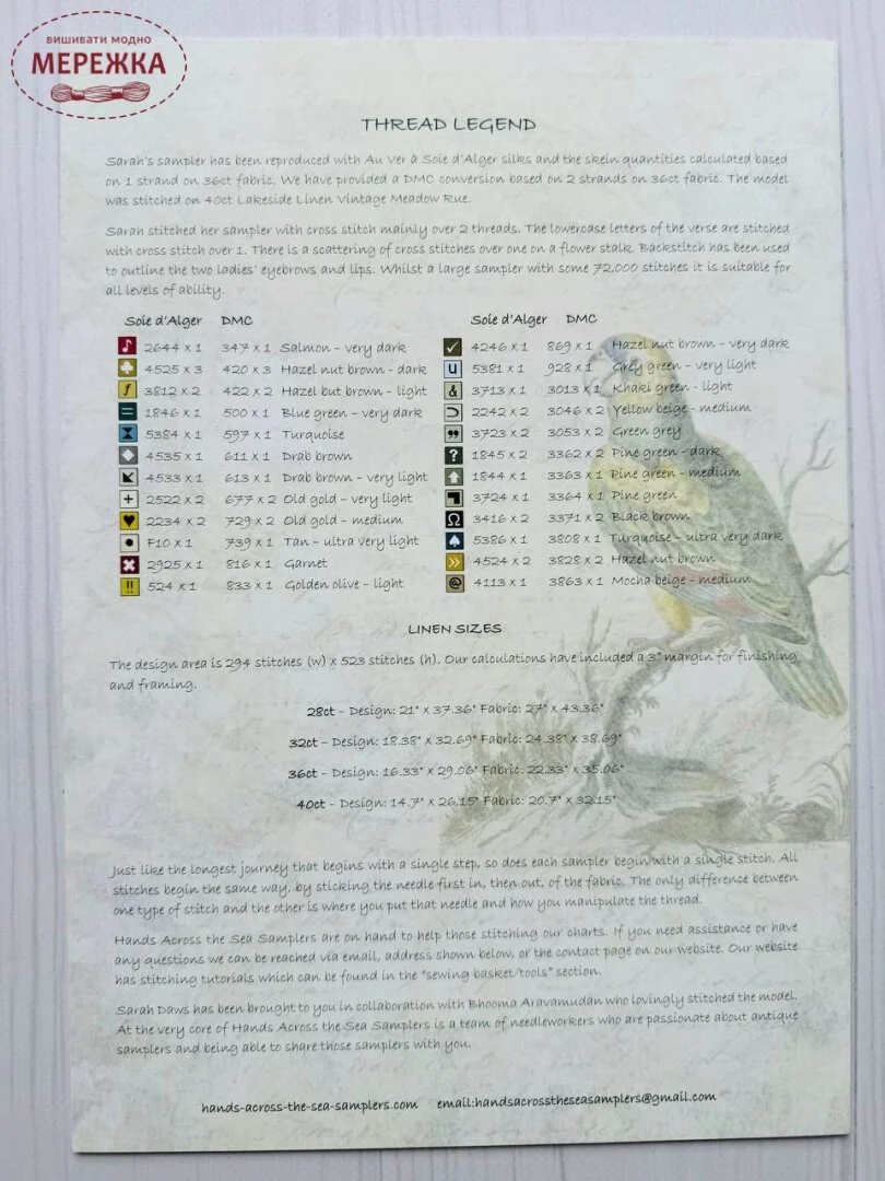 Hands Across The Sea Samplers Limited - це студія дизайну, яку заснували дві подруги. Студія спеціалізується на відтворенні вишуканих антикварних взірців вишивки з музейних зразків.