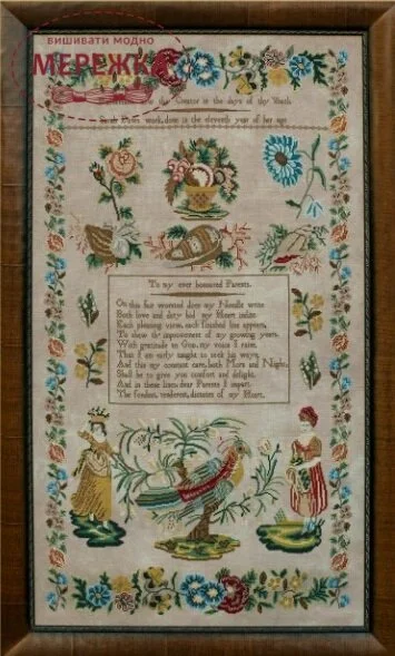 Схема для вишивання хрестиком Sarah Daws 1840 від Hands Across the Sea Samplers.