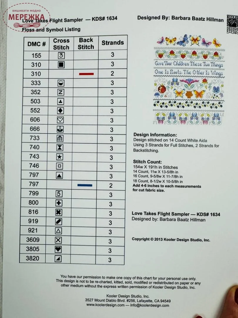 Схема для вишивання від Kooler Design Studio "Love Takes Flight Sampler".