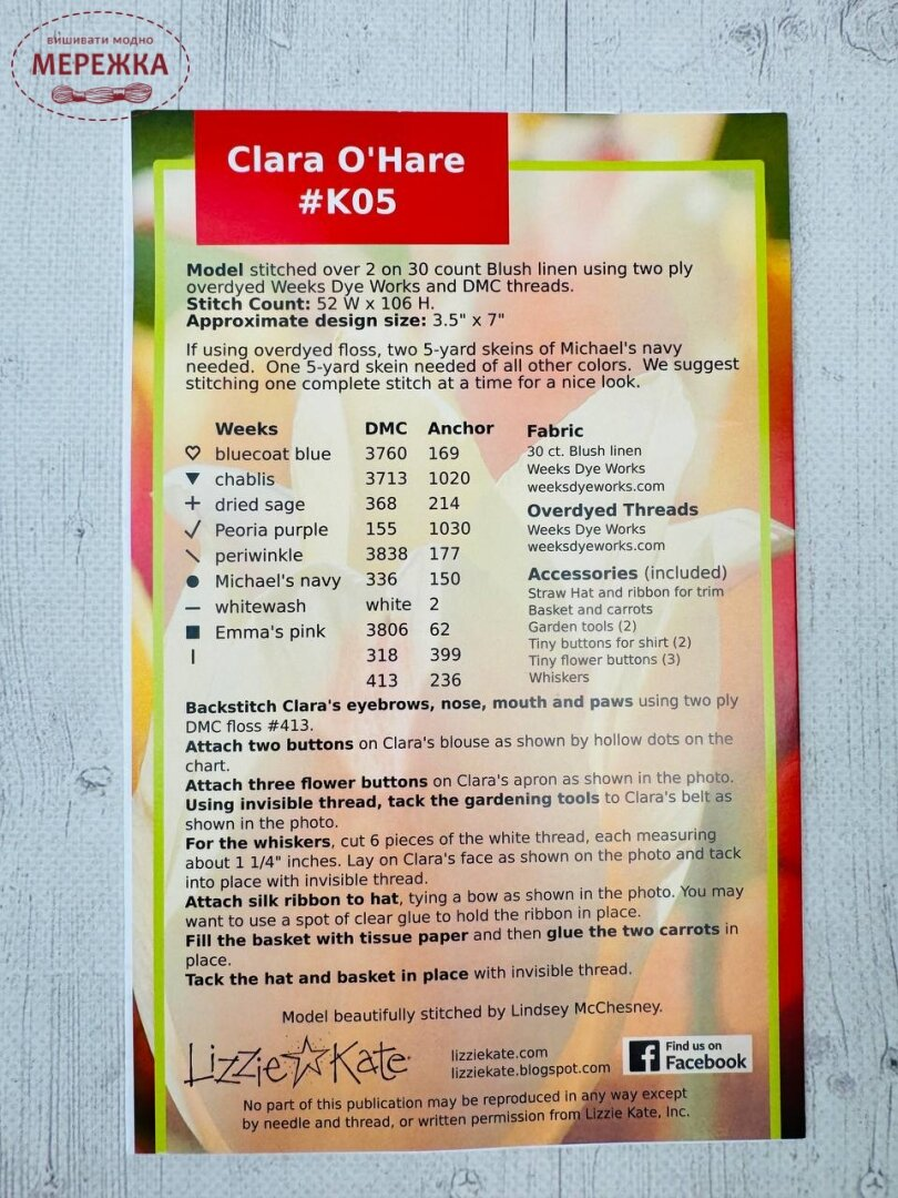 Lizzie Kate Схема Clara O'Hare+пришивні елементи К05