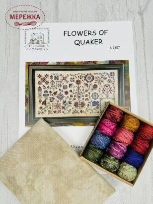 Схема для вишивання від Rosewood Manor "Flowers of Quaker" із комплектацією нитками Valdani та тканиною від PTP.