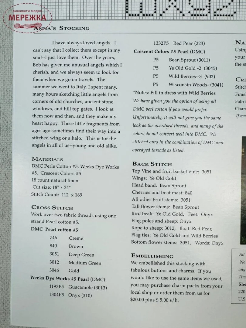 Схема для вишивання хрестиком Anna's Stocking від Shepherd's Bush.